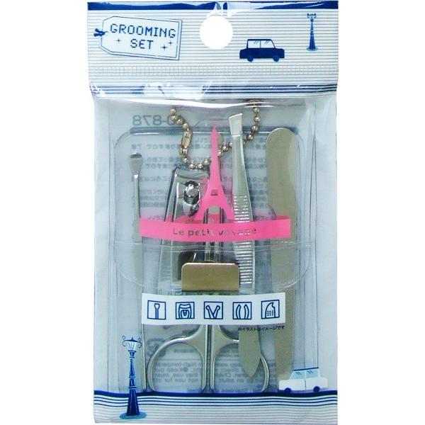 トラベルエチケットセット(耳かき、爪切り、毛抜き、爪やすり、ハサミ) 40-878 携帯用 身だしなみ 色選択不可 15点迄メール便OK(se0a072)
