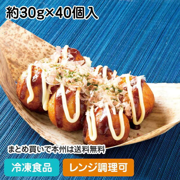 一口でほおばりきれないほど、大きくて丸い国内製造のたこ焼です。食べ応えがあります。
