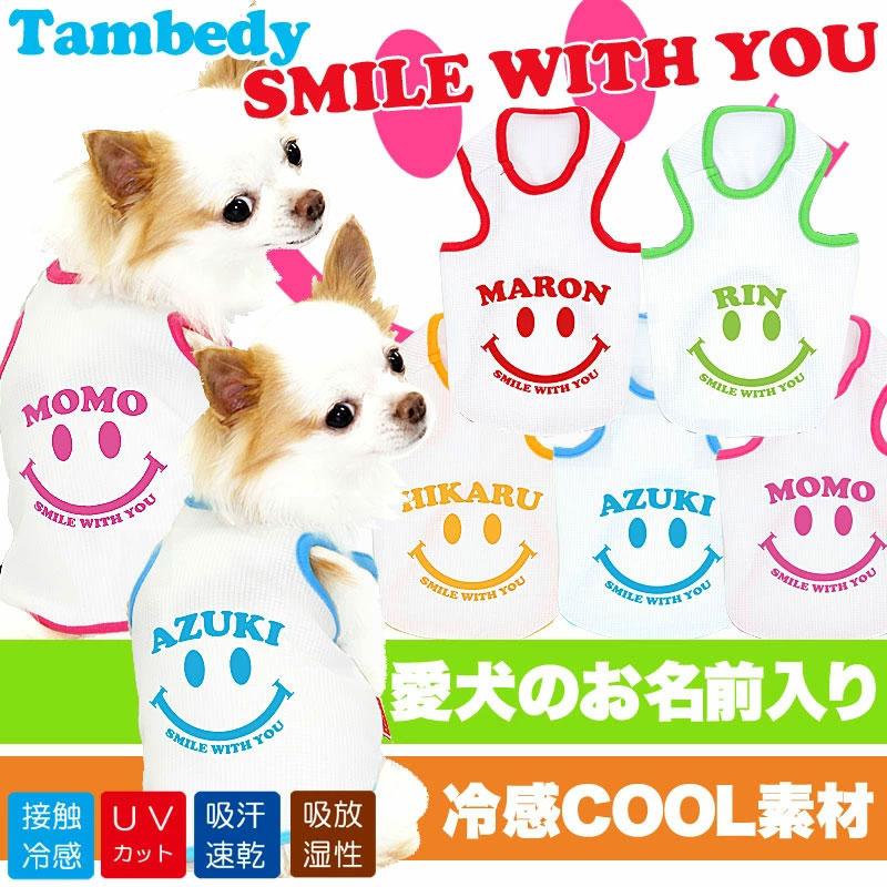 \全品ポイント5倍8日23:59まで/犬 服 夏 ひんやり冷感クール 名前入り スマイルウィズユー タンクトップ BW メール便送料無料
