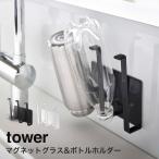 グラスホルダー スリム おしゃれ 水切り 磁石 グラススタンド コップ立て 乾燥 ボトルスタンド 山崎実業 マグネットグラス&ボトルホルダー タワー tower