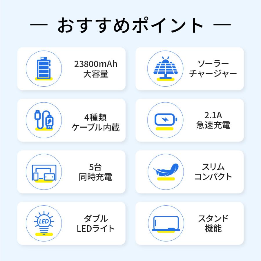【23800mAh 大容量 ケーブル内蔵型 モバイルバッテリー】