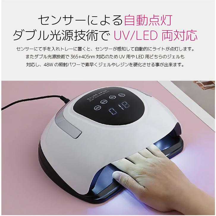 ・【UV+LED二重光源】ネイルドライヤーは約350-415nmの最新なダブル光源技術を採用して、どんなジェルも、レジン液も、シャキっと硬化します。 自宅でもネイルサロンをお手軽に楽しむことができます。