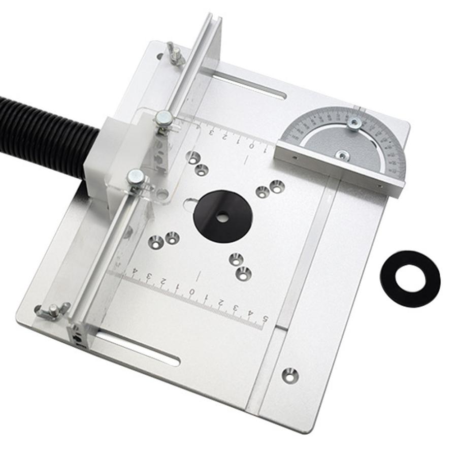 トリマーテーブルの中央に取り付けて、トリマーのビットが通る穴を調整します。