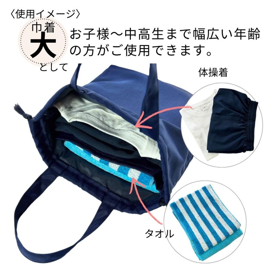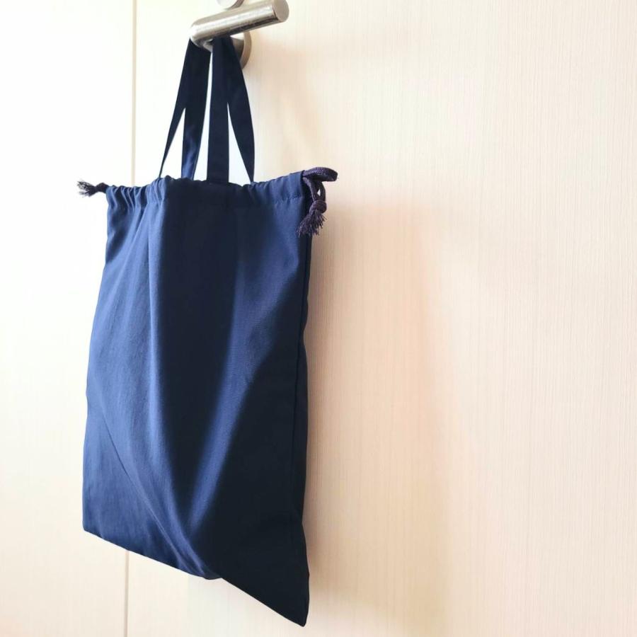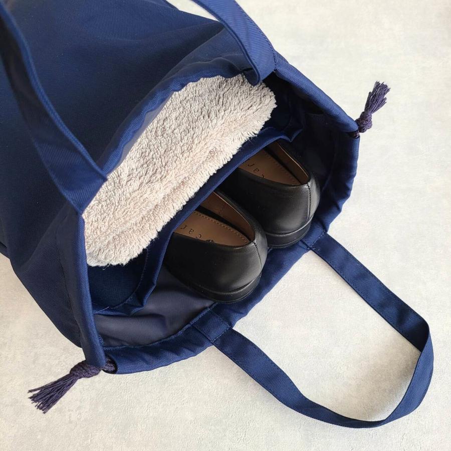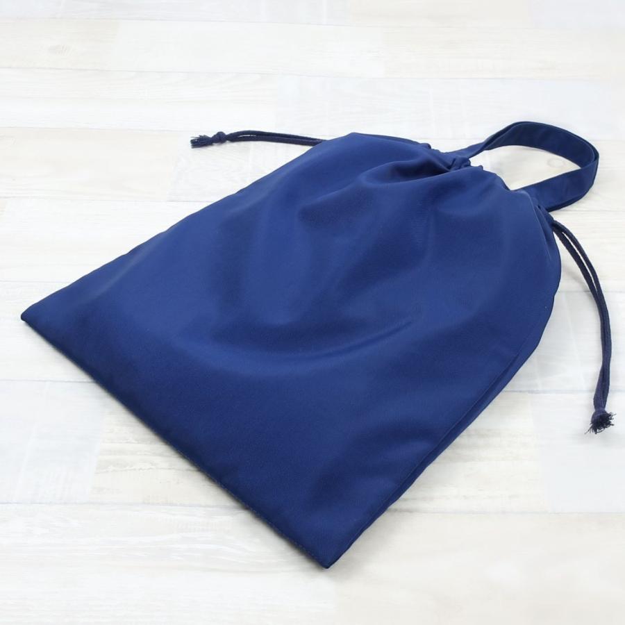【巾着型 シューズバッグ(2足用)紺色 無地 巾着袋 大(体操着入れ)としても】