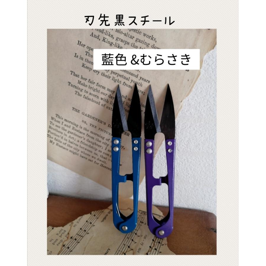 ゴールド・むらさき・藍色・ギザギザエメラルドグリーンのみ刃先が黒スチール素材になります。