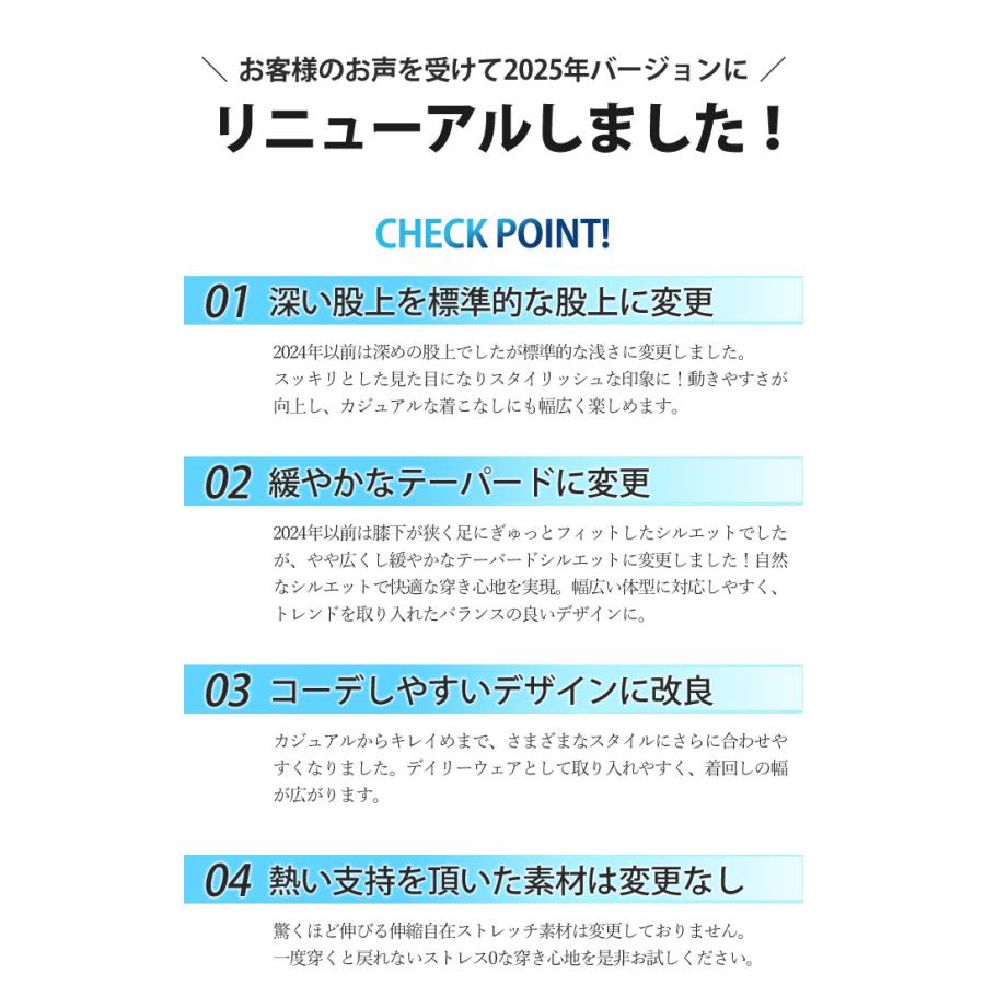 ウエストやヒップなど伸縮自在ストレッチチノ素材を採用し、快適なフィット感を実現。太ももから足先にかけて細くなるテーパードシルエットが脚長効果を生み出し、スッキリと見えるシルエットです。細部のデザインにも拘り、股上部分にはガゼットクロッチ縫製を採用し、180°の開脚が可能。スマホが収納できる「第3のポケット」を搭載し、使い勝手も大幅に向上!スタイル・快適さ・機能性を兼ね備えた一本です。