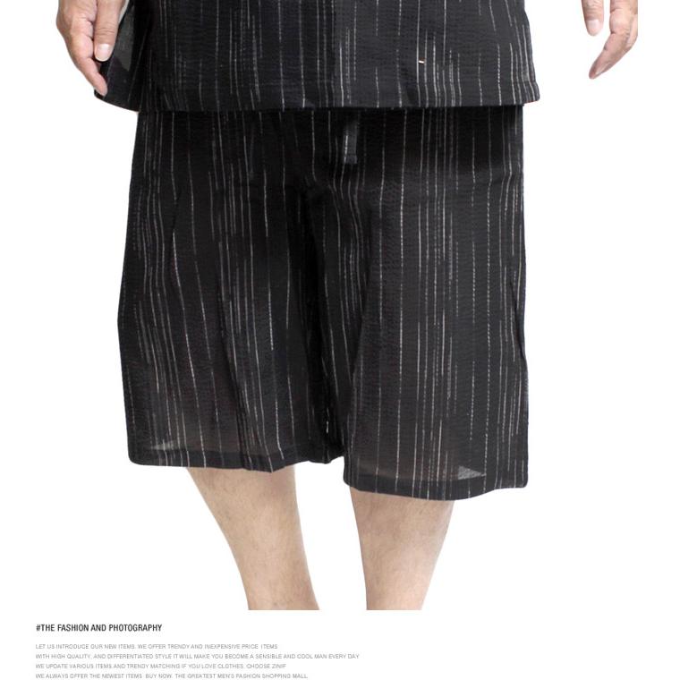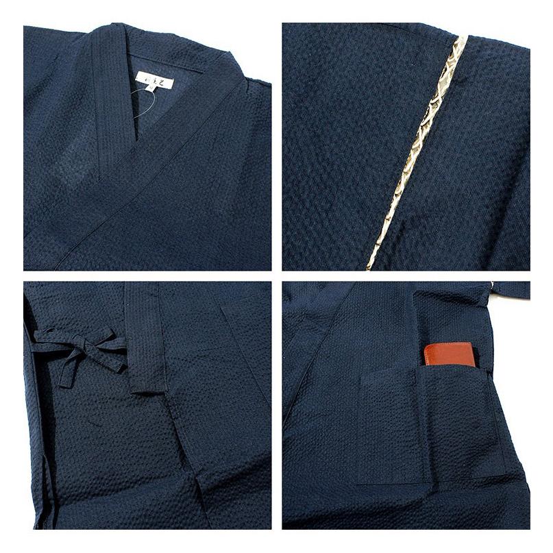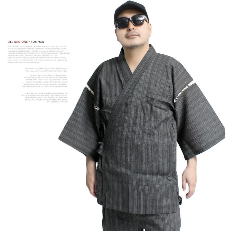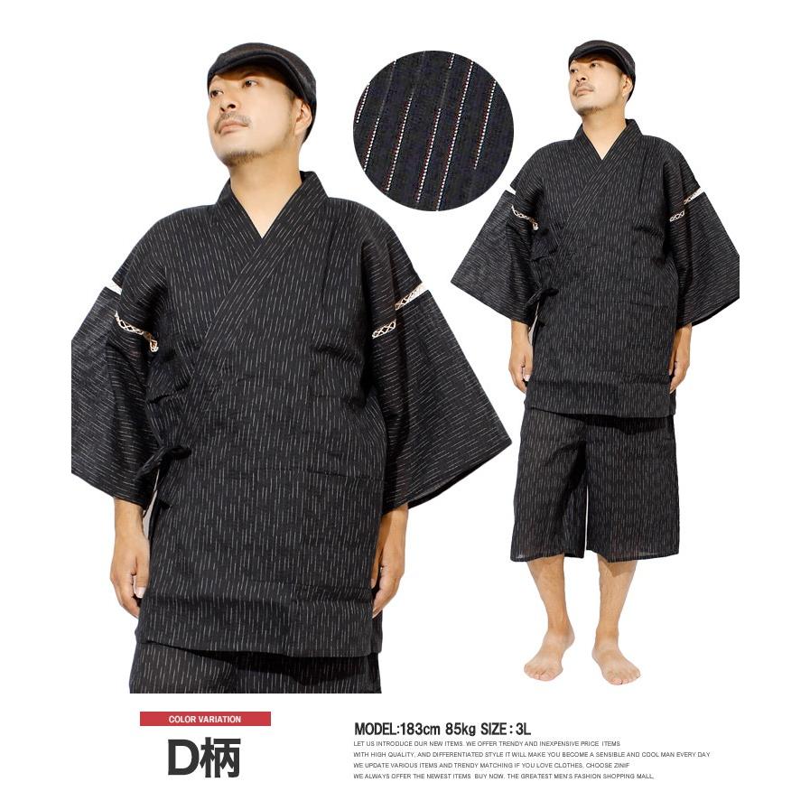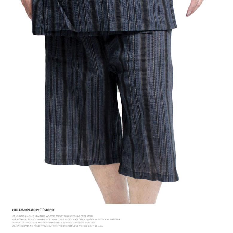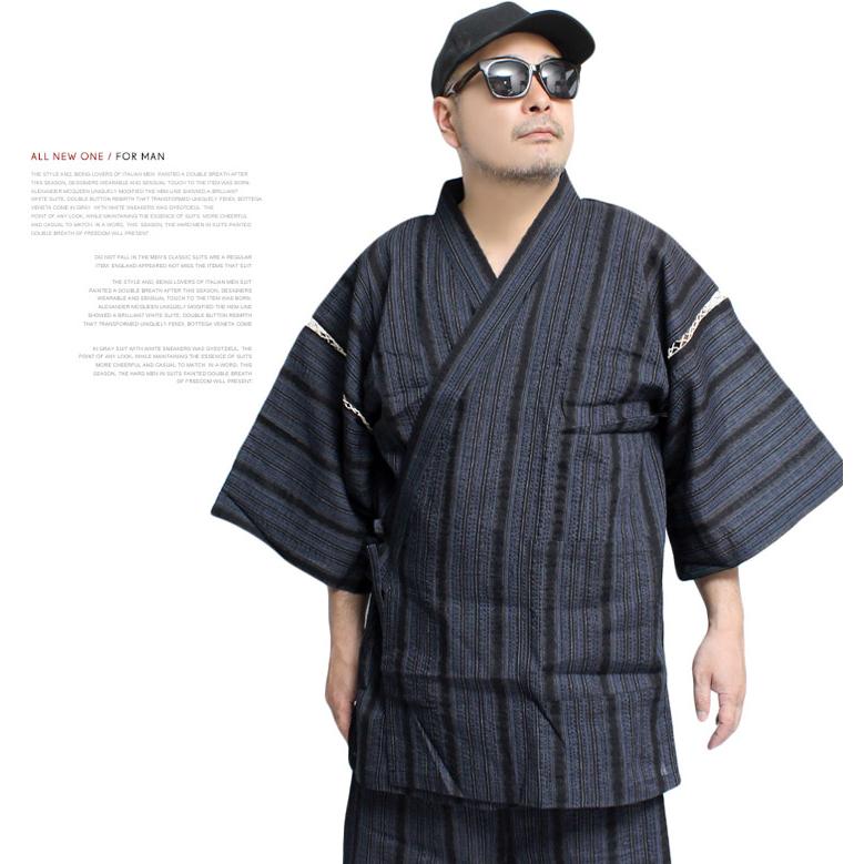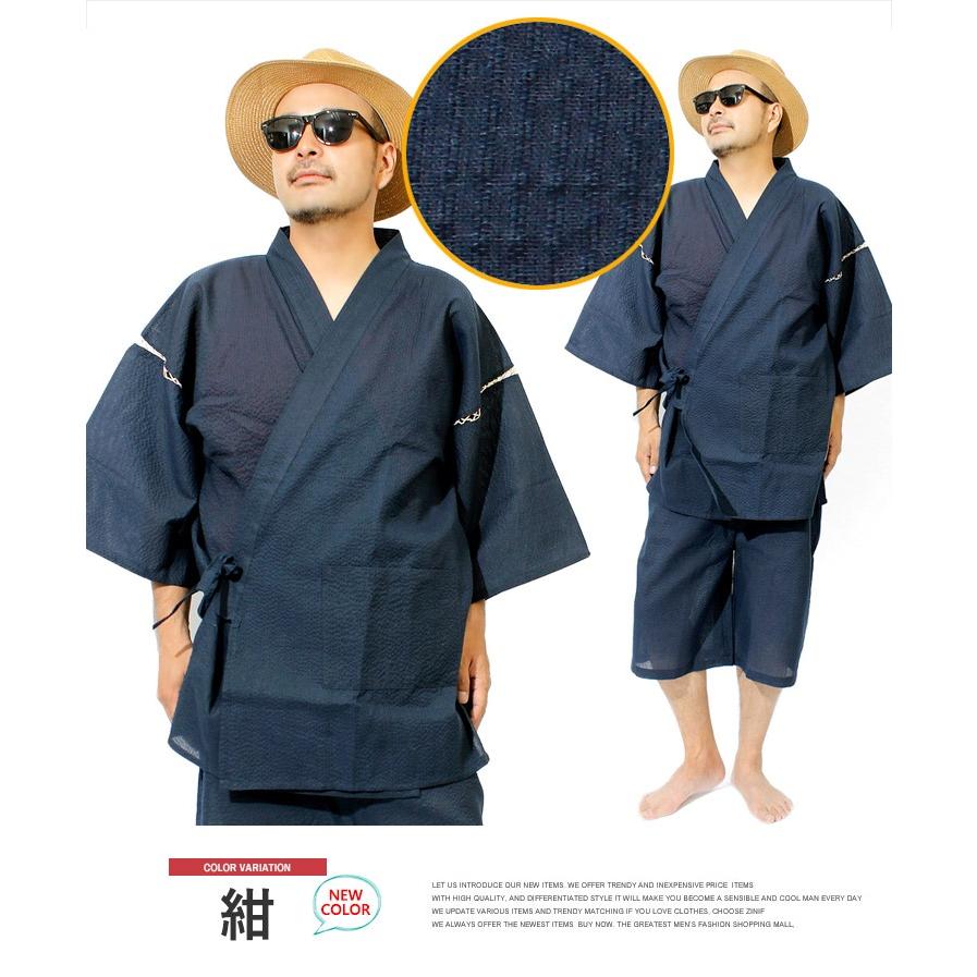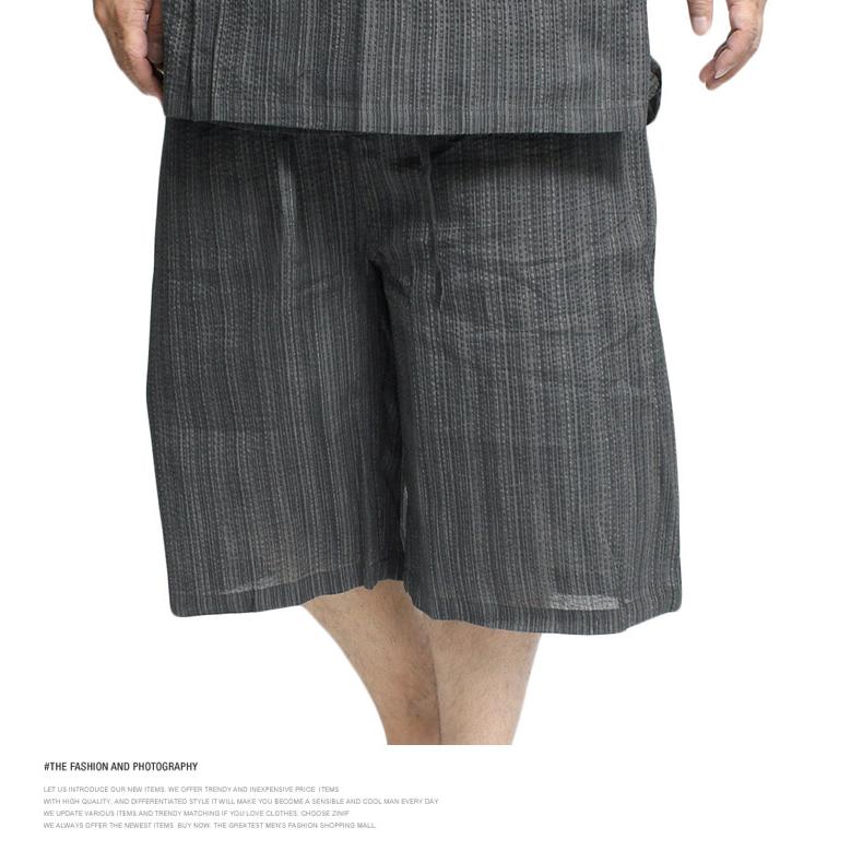 【説明】しじら織り甚平の登場です。夏の伝統和装でもある甚平は湿度の高い日本の夏には涼しく快適。年代問わず夏のイベントなどの遊び着やルームウェアとして着用していただける和装です。上着の外側にはポケット付きで、生地は肌離れが良くサラサラしたしじら織りの生地を使用し、さらに快適な甚平です。サマーシーズンをより快適に、より楽しくお過ごし頂けるオススメのしじら織り縞模様甚平上下セットです。【素材】ポリエステル65% 綿35% やや透け感あり