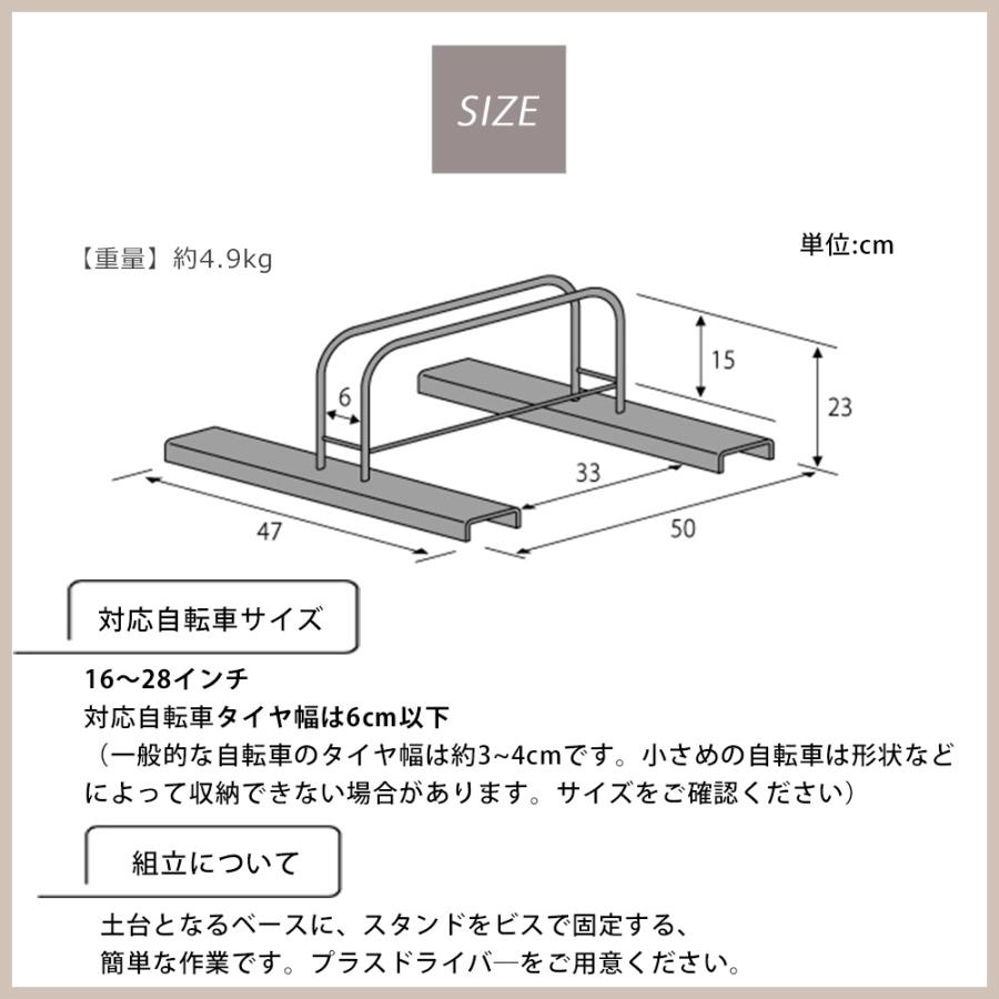 ・横幅のある土台で自転車の横倒れに強いです。