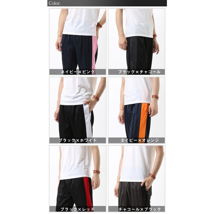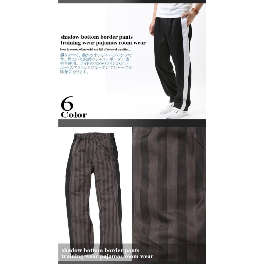 履きやすく、動きやすいジャージパンツです。程よい光沢感のシャドーボーダー素材を使用。サイドの太めのラインがシルエットのアクセントになっていてシャープな印象になります。