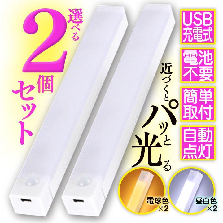 人感センサーライト 充電式 USB マグネット 2本セット 省エネ 室内 クローゼット トイレ 廊下 玄関 階段