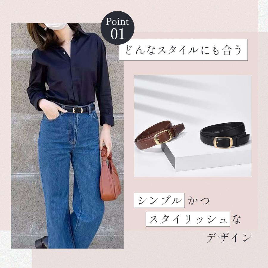 商品名:ベルト レディース 本革 牛革 ジーンズ デニム おしゃれ かわいい 細い 細め 女性 ゴールド バックル 黒 ブラック