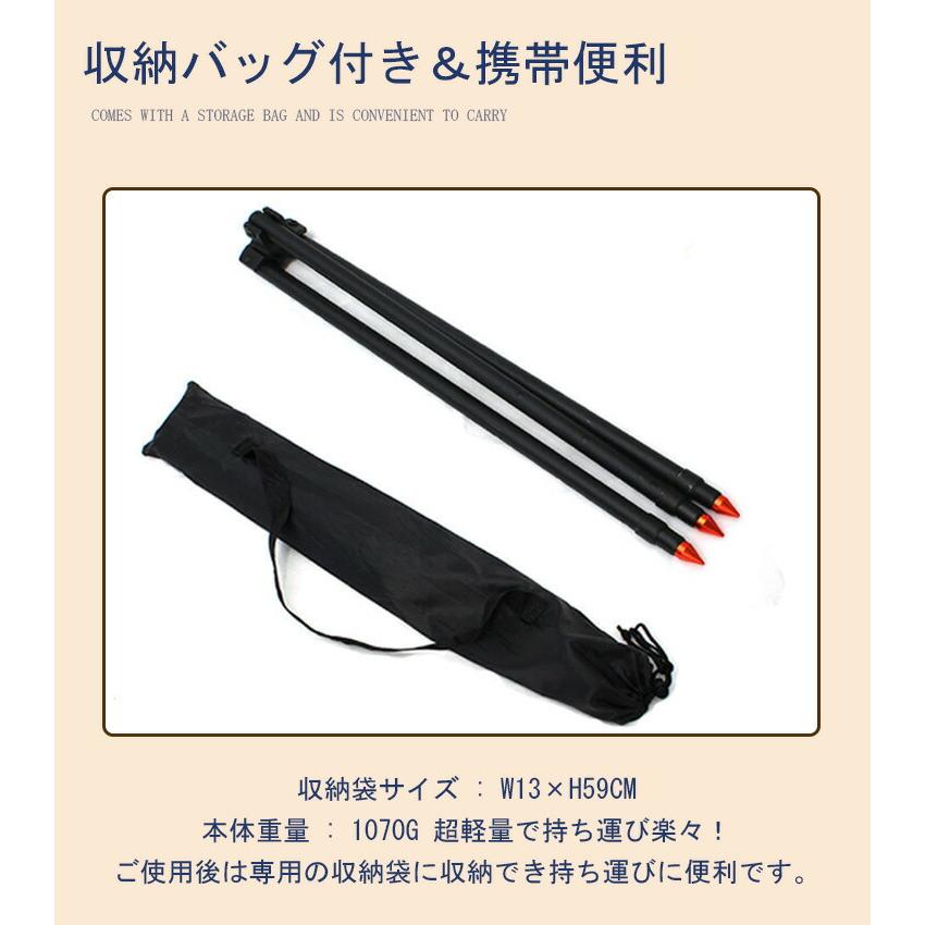 【仕様】商品名:トライポッドカラー: ブラック素材:ステンレス、アルミ合金重量: 約1070gサイズ:組立時:117.5cm×93cm、収納時:59cm×13cm開く角度:40°セット内容:チェーン*1、収納ケース*1、三脚スタンド*1