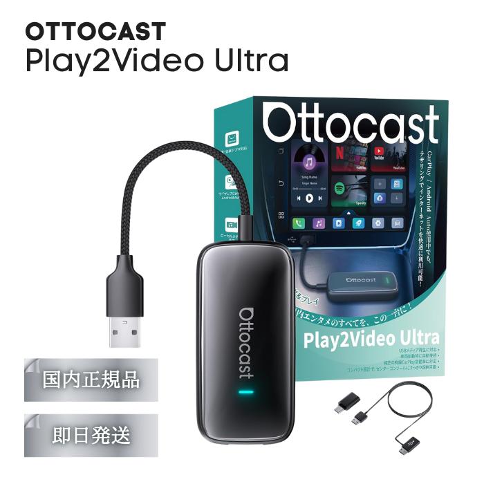 OTTOCAST Play2Video UItra オットキャスト ワイヤレス carplay アダプター Android Auto カープレイ スマホ 車 アンドロイド wifi 音楽 通話 無線化 カーナビ