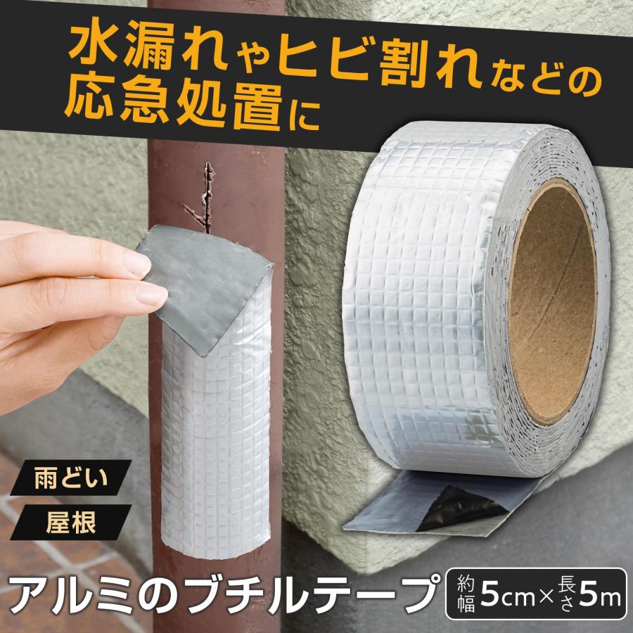 \自分で簡単補修/・水漏れやヒビ割れなどの応急処置ができるブチルテープ・強い粘着力のブチルゴムが、水漏れ箇所に密着!雨どいやトタン屋根などに貼るだけなので、取り換え前の一時補修や、災害時の応急処置として使用いただけます◎※水漏れ専用のテープではないため、完全に止水することはできません。【サイズ】約幅5cm×長さ5m50mm/シール/梅雨対策/室内/屋外