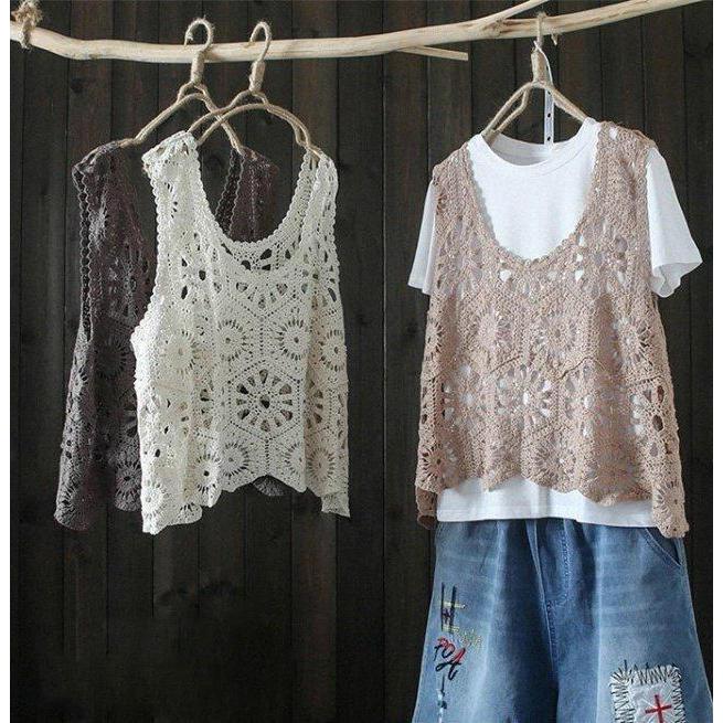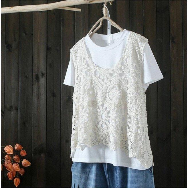 トレンドの透かし編みでインナーとのレイヤードスタイルを楽しめるレースベスト。