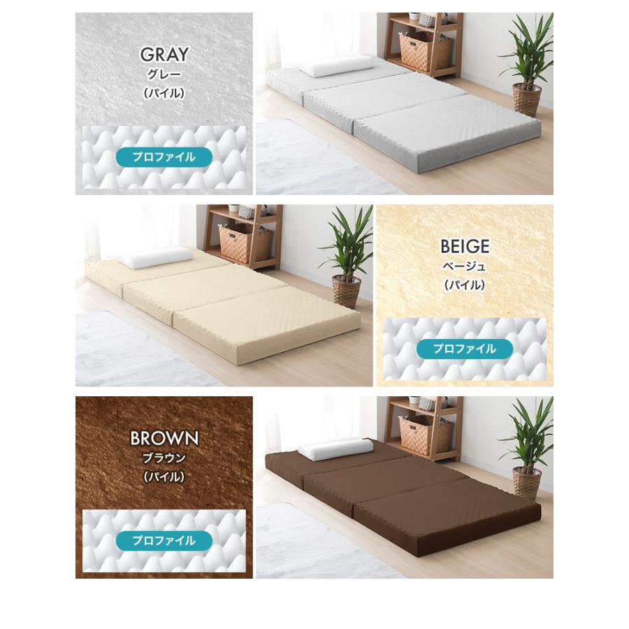 適度な硬さで身体をしっかり支える、三つ折りタイプの高反発マットレスです。