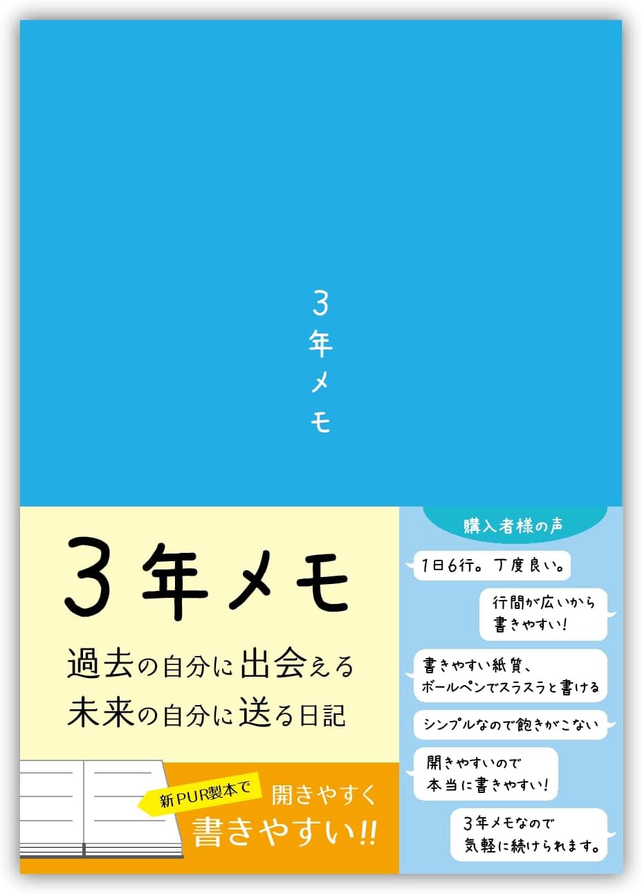 【紙面】上質紙384ページ(厚み通常)の紙面を使用しています。【サイズ】A5(21cm×15cm)いつからでもはじめられる日付書き込み式、1年後に過去の自分に出会えます。新PUR製法で、日記が開きやすい仕様です。ソフトカバーになります。