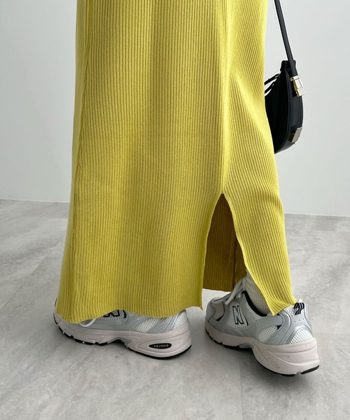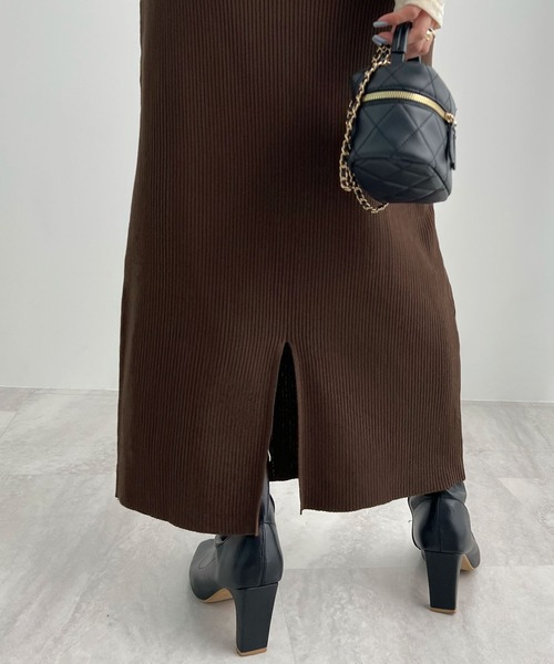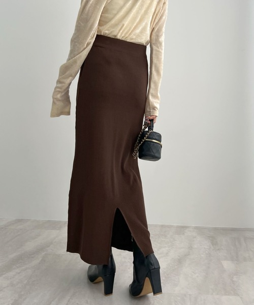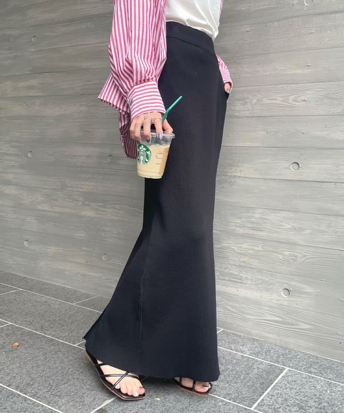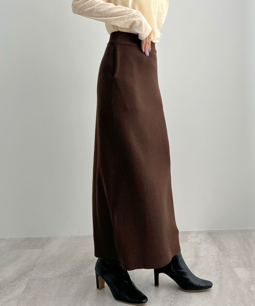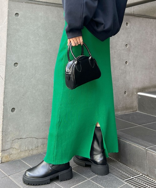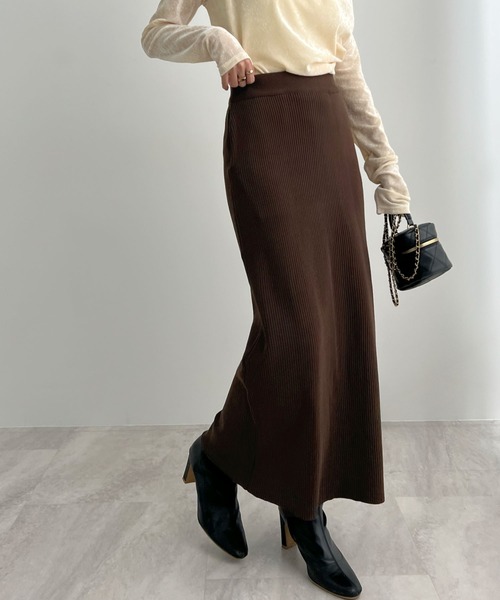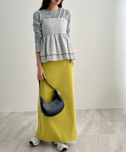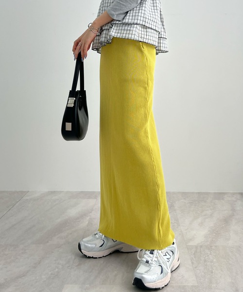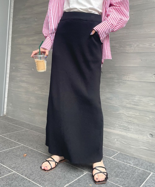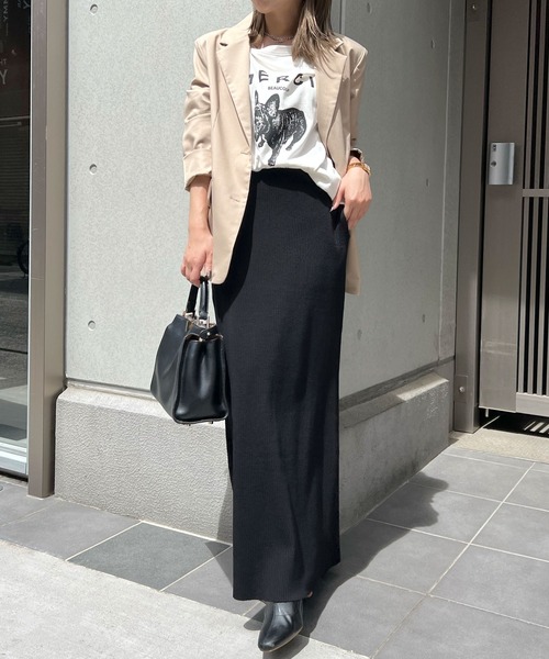 キーワード:スカート ウエストゴム タイト ロング ワンポイント 無地 ピクニック レジャー フェミニン モード 公園 秋 大人カジュアル 定番 旅行
