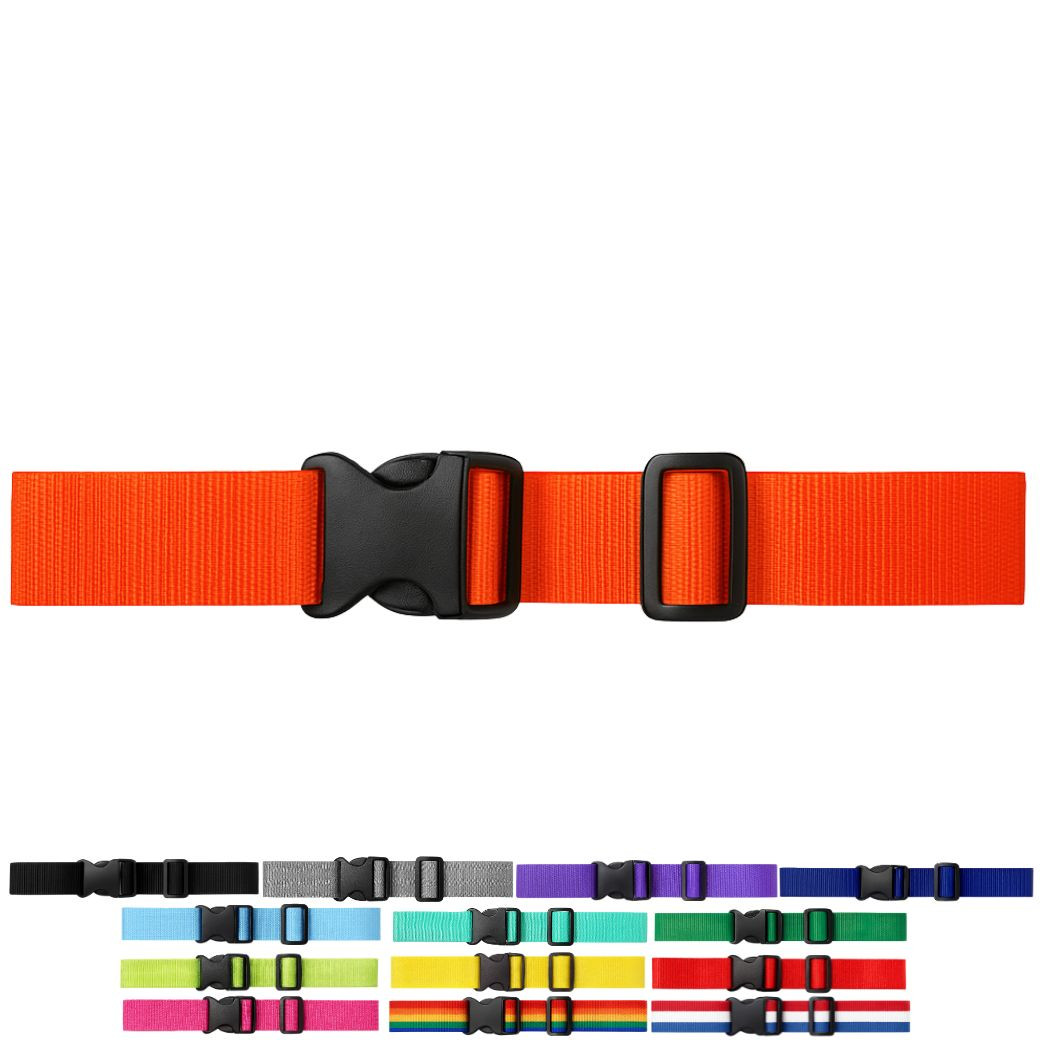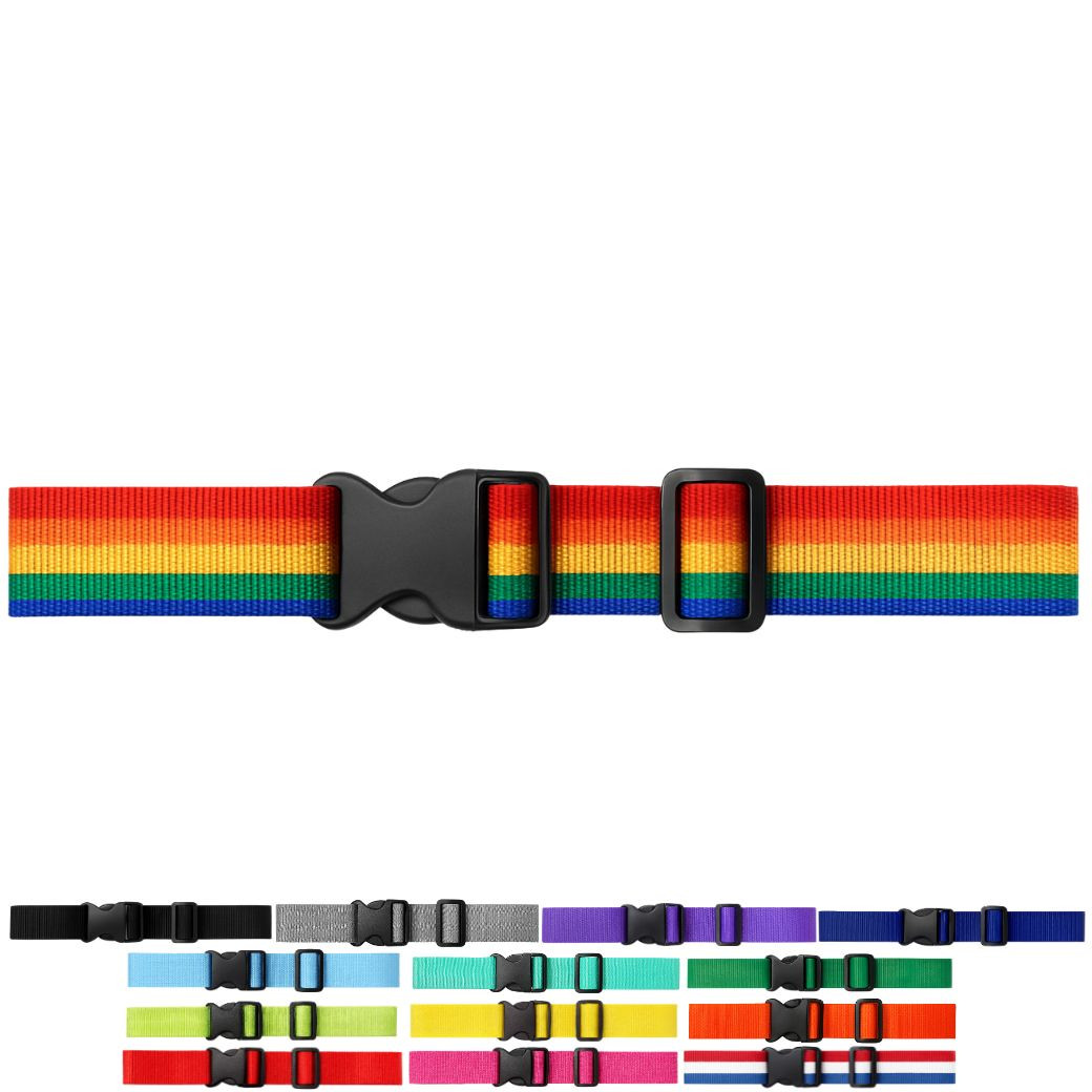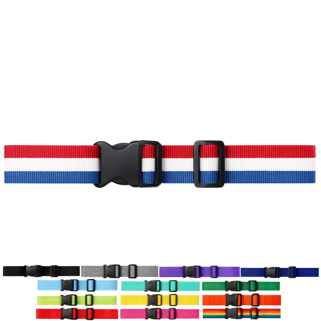 ・特徴:海外旅行でも安心な派手で目立つおしゃれなスーツケースベルト。耐久性の高いナイロン素材を幅5cmまで使用することで強度とすっきりとした見た目を実現させました。二重に巻いたり、十字にすることでスーツケースの開放防止をより強化することができます。カラフルな組み合わせでアレンジも可能なので、ターンテーブルで荷物の目印にもなる便利なスーツケースベルトです。
