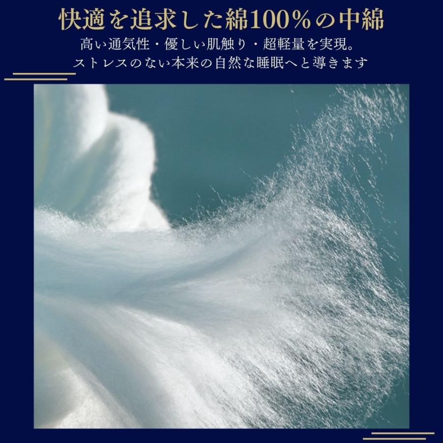 綿100%の中綿を使用したストレスフリーな軽量タイプで、繰り返し洗って使用することができます。