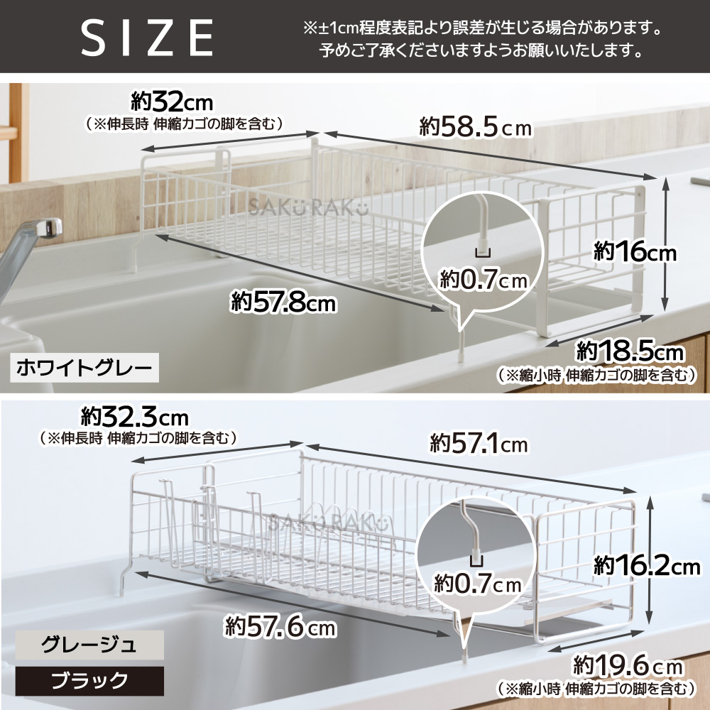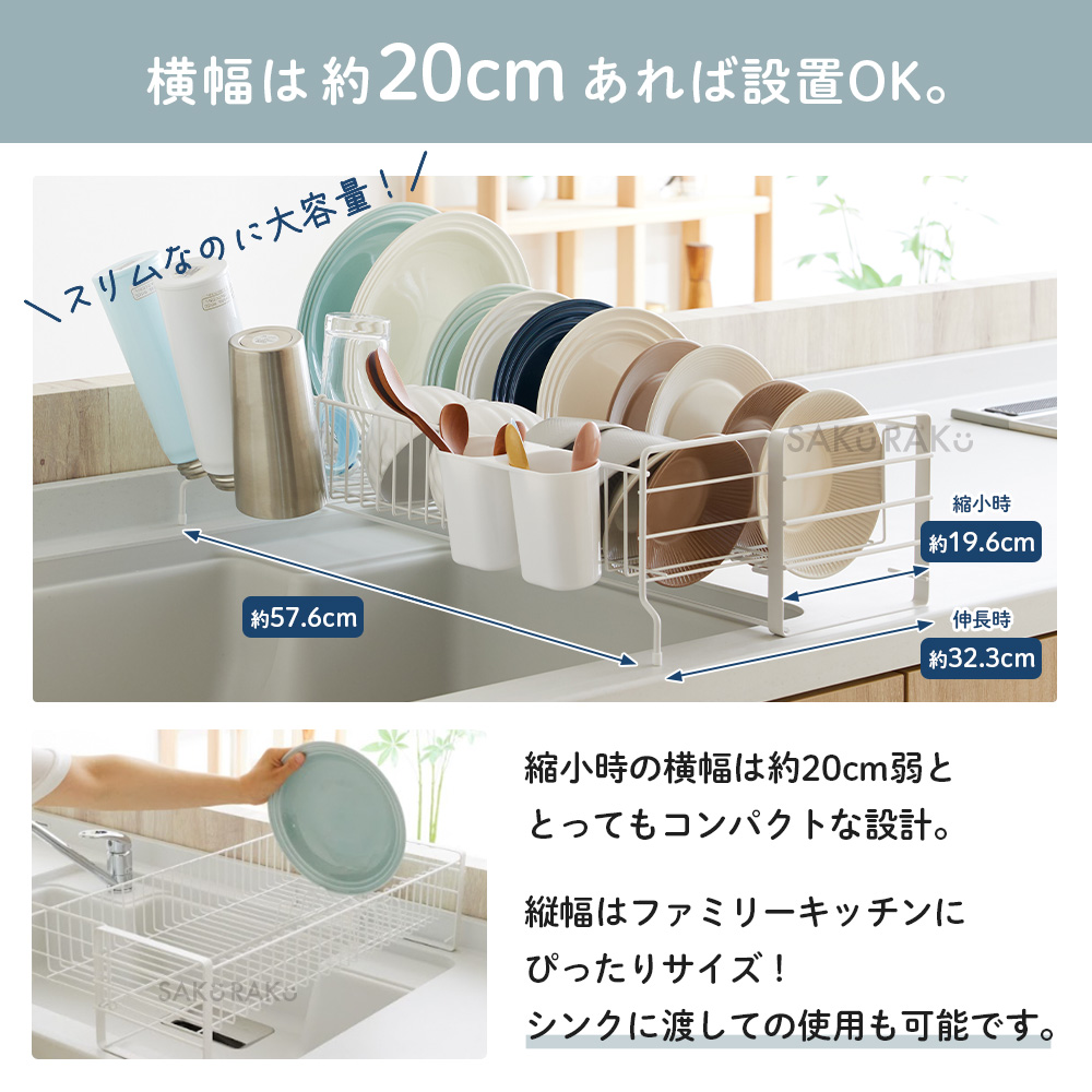 ・キッチンの限られたスペースを広々使える伸縮式1段水切りラック。