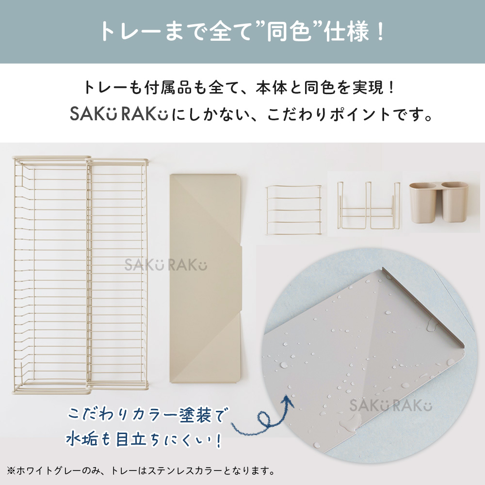 ・水切りトレイには傾斜がついていて落ちた水分が直接シンクに流れる仕組みです。
