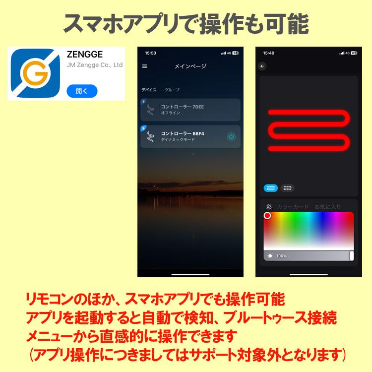 ●発光モード:リモコンまたはアプリ(Bluetooth)で操作 ※RGB単色や変色モード等切替