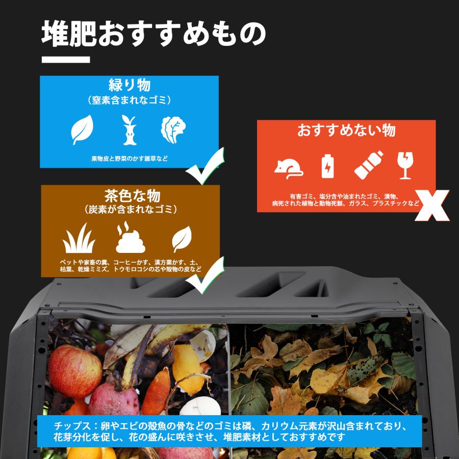 ・豊かで健康的な堆肥の途切れのない流れを作り出すことができます。満タンでも回転は可能で、タンブリング設計により混合が効率的になります。