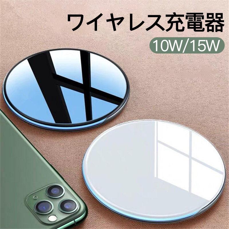 「ケースをつけたままで充電」、「置くだけ充電」、Qi規格準拠のワイヤレス充電器。iPhone8以降の機種(iPhone16対応可)、アンドロイド等のスマホに対応、最大15W出力の急速充電。