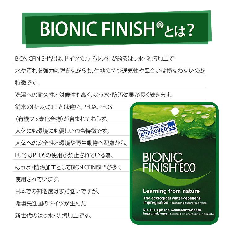 ドイツのルドルフ社が誇るはっ水、防汚加工のBIONIC FINISHを施しました。