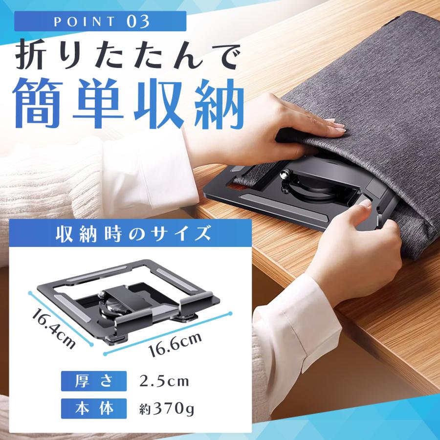安定性と軽量・コンパクト化の両立を目指して、さらに改良したタブレット回転スタンドです。
