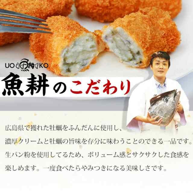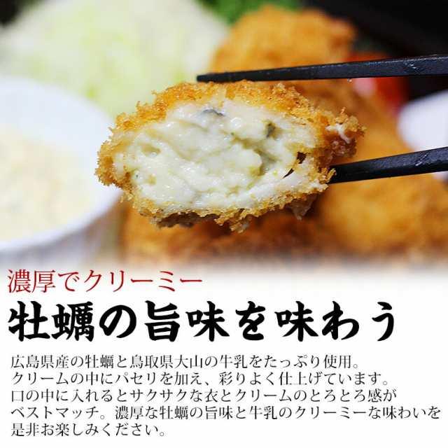 広島県産の牡蠣と鳥取県大山の牛乳をたっぷり使用。クリームの中にパセリを加え、彩りよく仕上げています。口の中に入れるとサクサクな衣とクリームのとろとろ感がベストマッチ。濃厚な牡蠣の旨味と牛乳のクリーミーな味わいを是非お楽しみください。【広島県産/牡蠣/かき/カキ】【特大/大粒/コロッケ/クリームコロッケ/クリーミーコロッケ】【海鮮/ギフト/贈答】