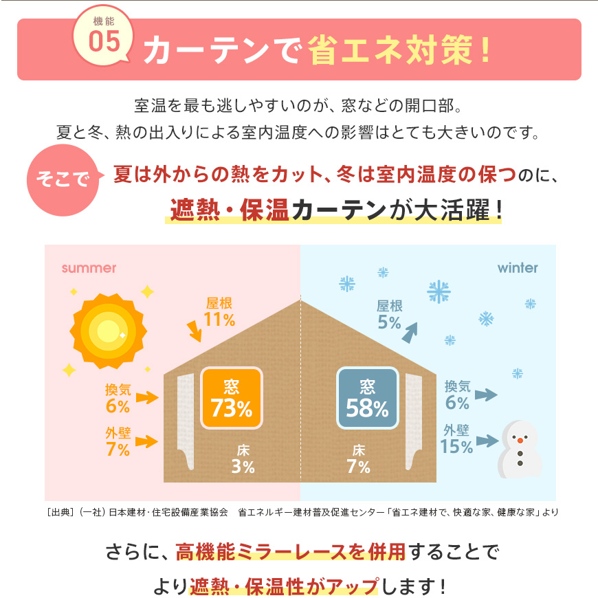 遮光 1級 2級 ミラー ( 夜も見えにくい ) UVカット ( 86%以上 ) 省エネ ( 遮熱・保温 ) 洗濯可能 形状記憶加工
