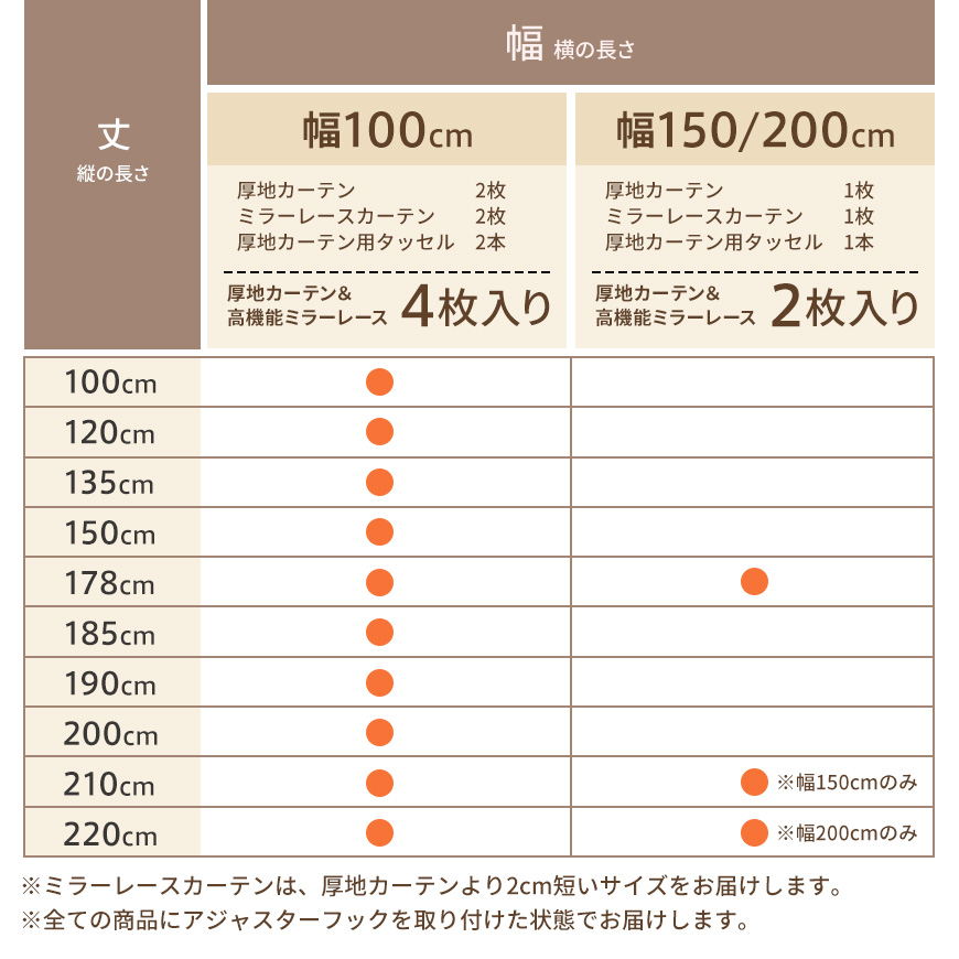 幅100:4枚セット(カーテン2枚+レース2枚)