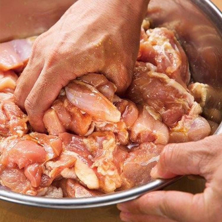 「食研から揚げ」は、現場で手作りしたような自然な美味しさを追求。醤油や酒など内部までしっかり染み込ませ香辛料は、表面に纏うように味付けしています。