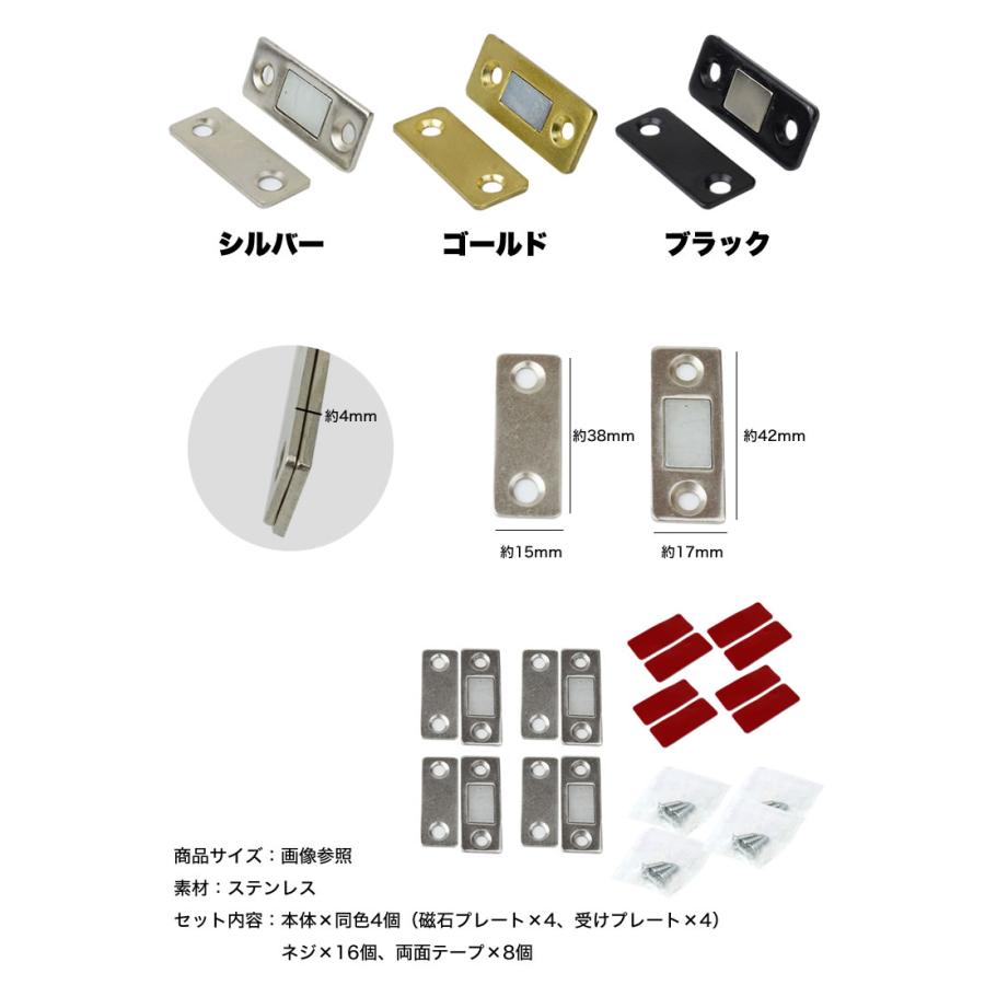 セット内容:本体×同色4個(磁石プレート×4、受けプレート×4)
