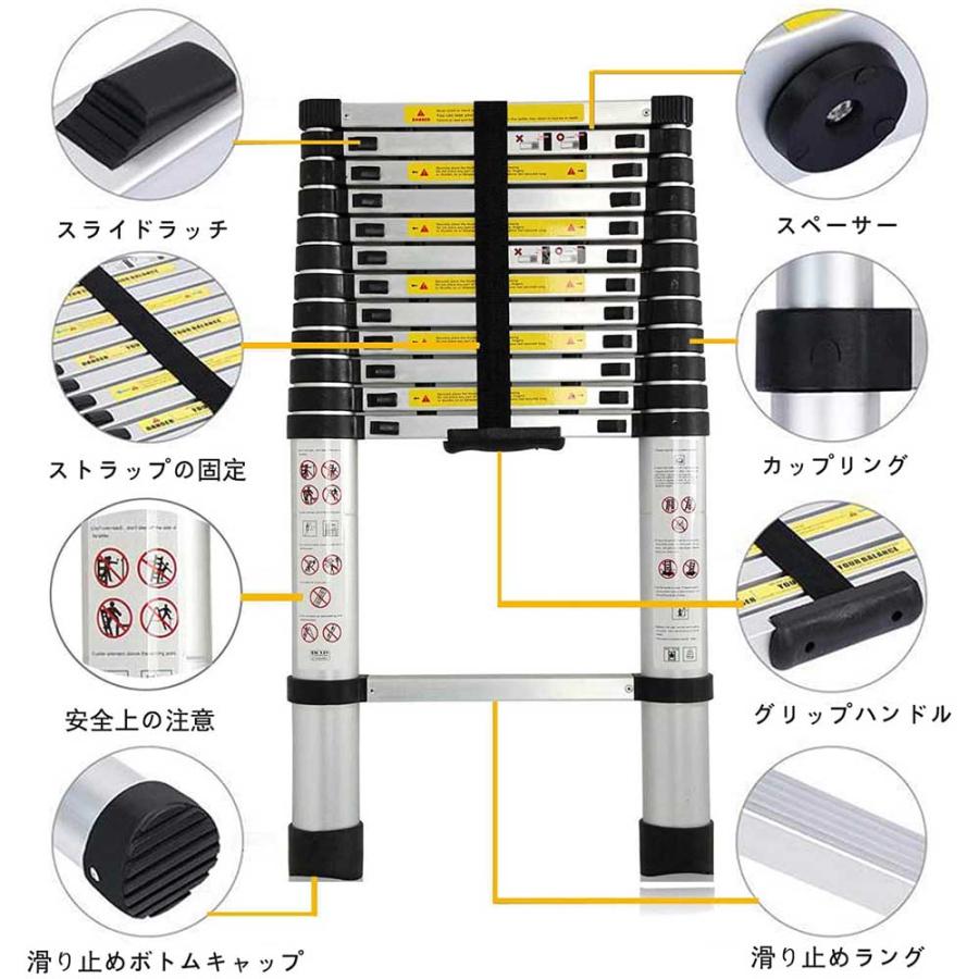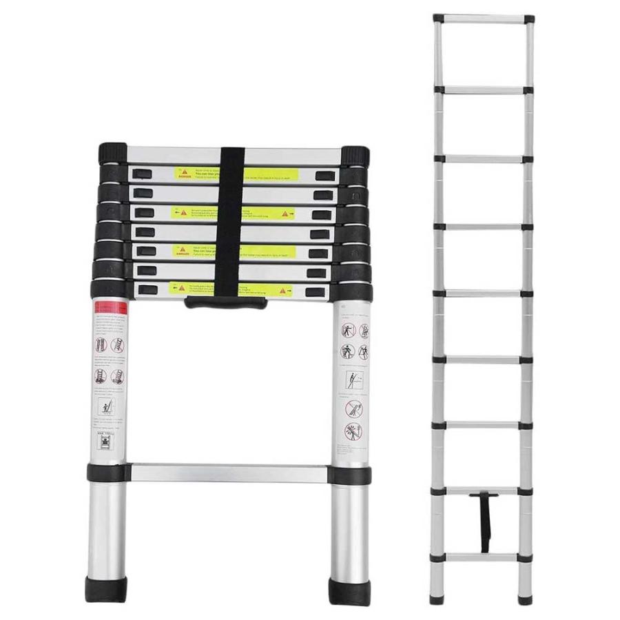 ハシゴの最大全長(約):260cm収納時尺寸(約):幅47cm×奥行き6.5cm×高さ72cm階段数量:9段、階段1段あたりの距離は30cm重さは6.6kgコンパクトなデザインで無駄な空間を省いてますので、狭い場所でも収納できます。