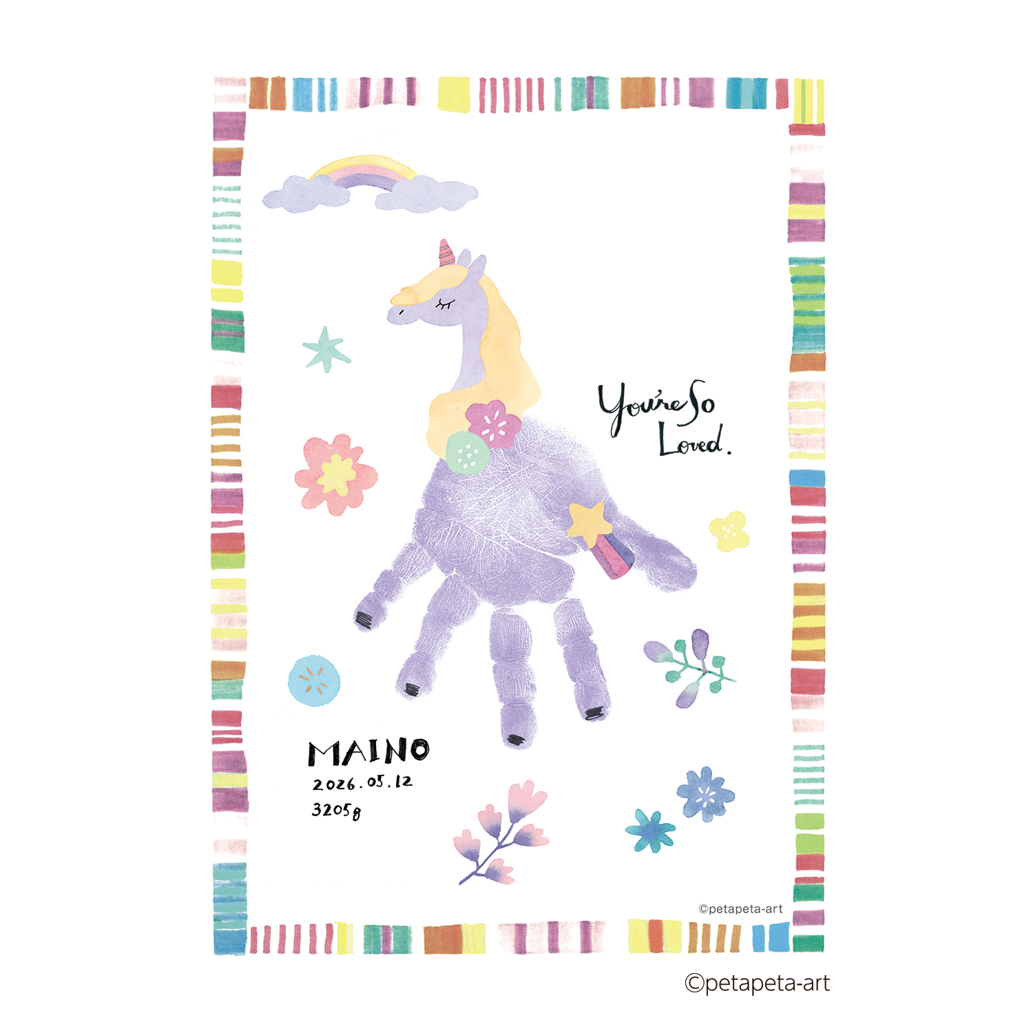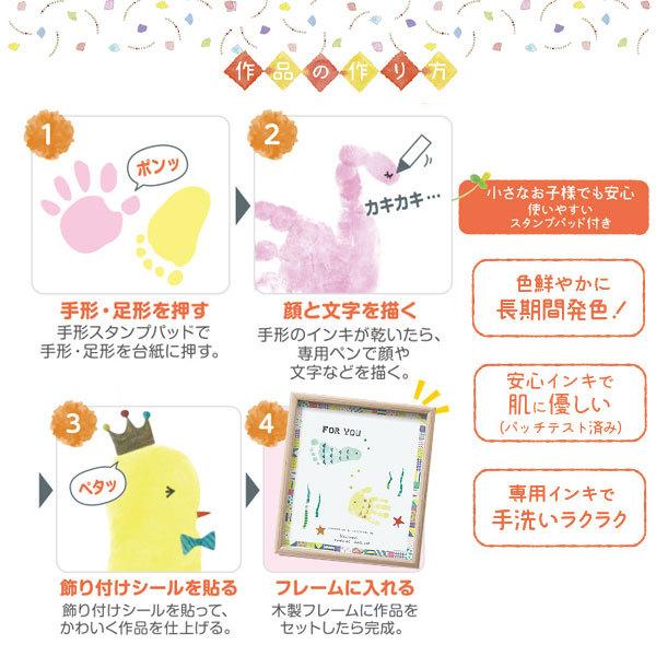 カラフルな手形や足形スタンプをシールやペンで装飾して、世界に一つだけの作品を作る手形・足形アート作成キット。