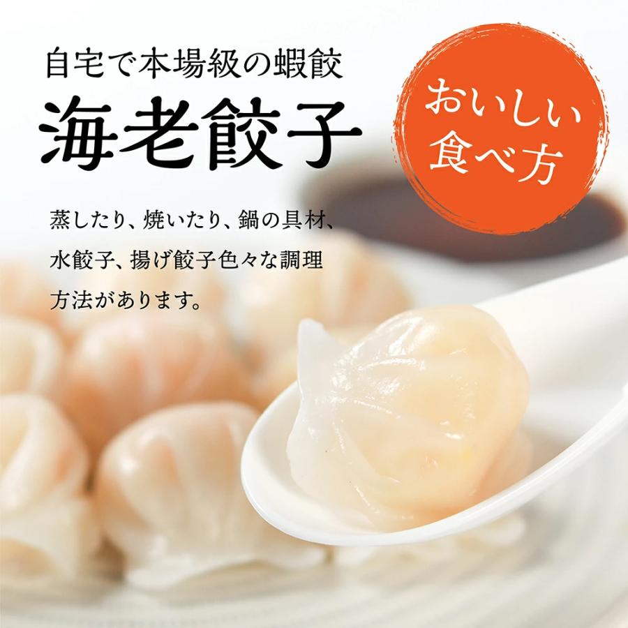 電子レンジの場合、凍った海老餃子を適度に水で濡らし皿に載せ、ラップを皿縁はぴっちり覆い皿中央は膨張するようふわっと大きめに包み、500Wで4個なら2分加熱。
