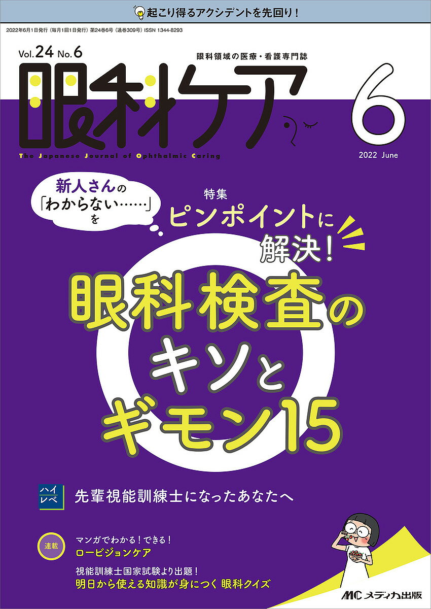 眼科ケア 眼科領域の医療・看護専門誌 第24巻6号(2022−6) 新人さんの「わからない……」をピンポイントに解決!眼科検査のキソとギモン15