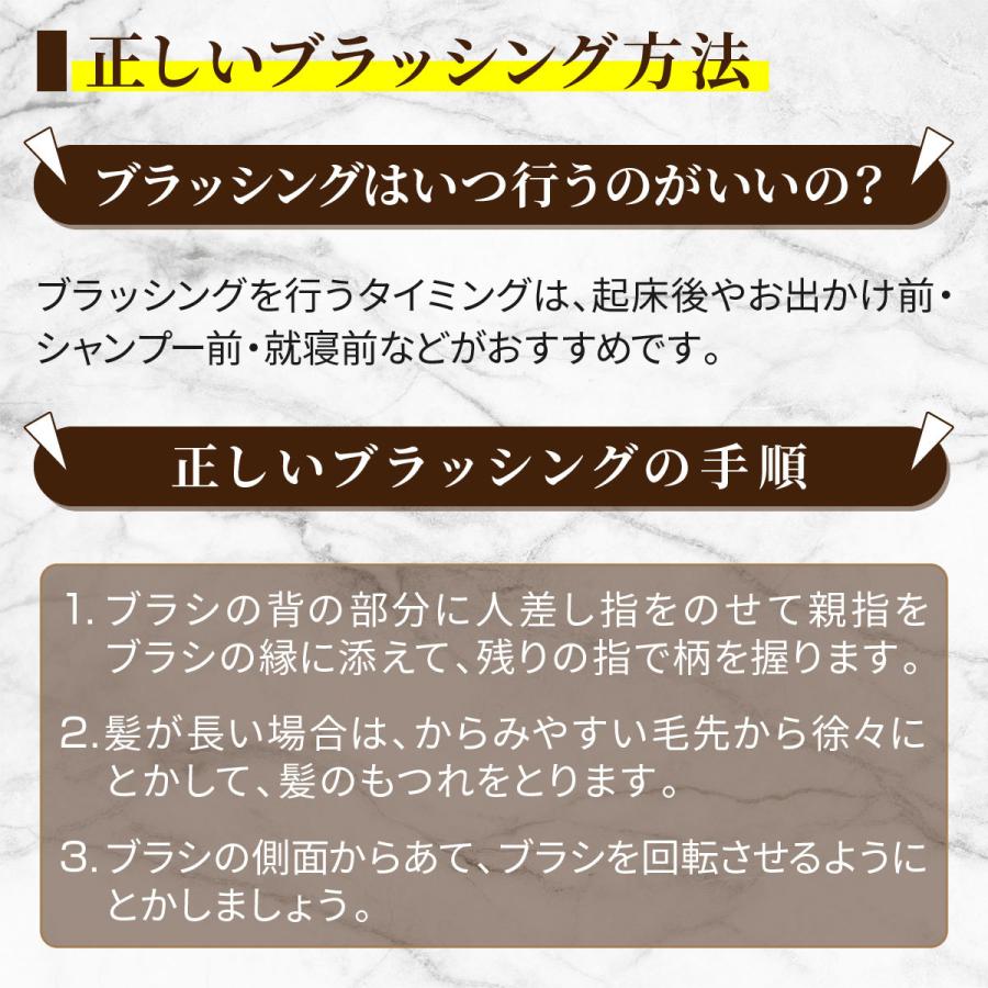 シャンプー前のブラッシングで髪と頭皮の汚れを落とし、キューティクルを整え、ダメージを予防してくれます!