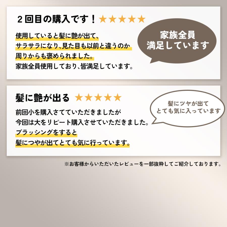 髪の毛を根元からブラッシングすることで潤い成分が髪全体に行き渡り、ハリ・コシ・ツヤ感をUPさせてくれます。