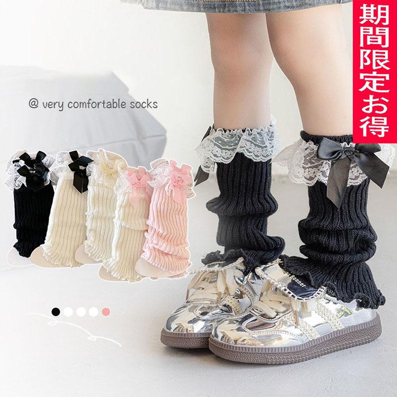 リボンレースレッグウォーマー 女の子 子供 靴下 韓国子供服 くしゅくしゅ ダンス 衣装 ヒップホップ ルーズソックス ガールズ ジュニア レディース 子ども服