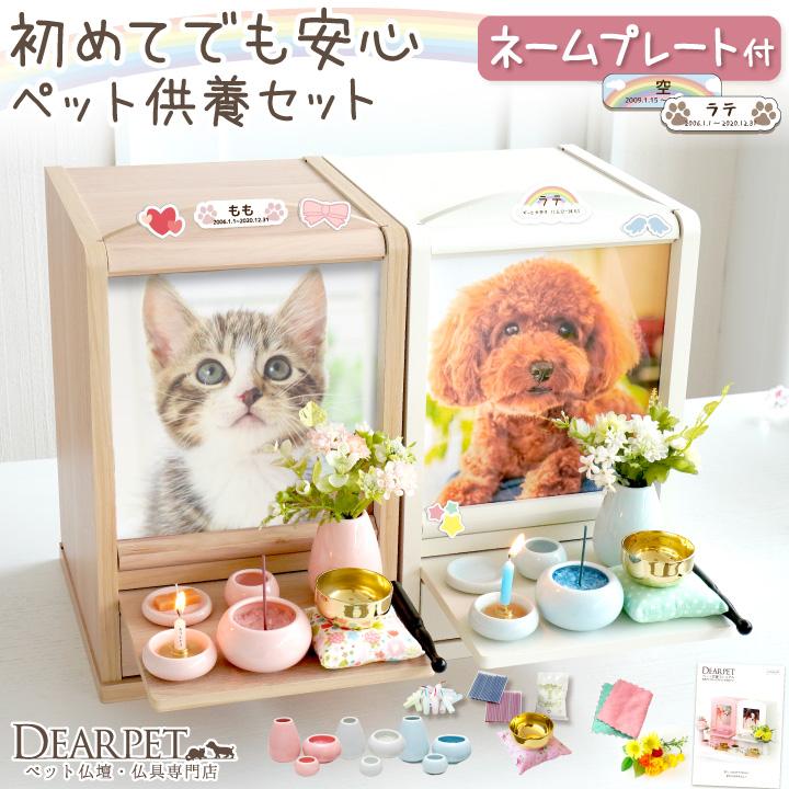ペット仏壇とペット仏具をセットにしてお届けいたします。お部屋やお好みに合わせてコーディネートして、大事なペットちゃんの新しい居場所をお作りください。