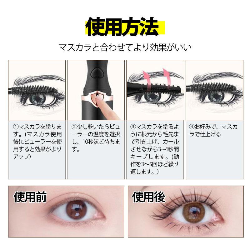 ホットカーラー まつげカーラー アイラッシュカーラー まつ毛カーラー ホットビューラー まつげビューラー まつ毛ビューラー ホット アイラッシュ ビューラー まつげ カールアップ まつ毛 カール 充電 持ち運び まつげ ホットビューラー ホットアイラッシュカーラー まつ毛 睫 睫毛 カール カール長持ち おすすめ 充電式 マスカラなし コスメ 熱くない 下まつげ cカール 人気 やけど防止 火傷 化粧 メイク 目元 飛行機 機内持ち込み 傷まない 痛む 奥二重 おくぶたえ カーラー型 化粧直し ナチュラルカール 根元から まつげパーマ 小さい マスカラ 送料無料 ホットビューラー ビューラー 3段階温度調節 長時間キープ 火傷防止 自動電源切れ 自動オフ ビューラー 予熱感知 24時間キープ USB充電式 人気のホットビューラー ・つけま対応! 一重さんでもOK!アイラッシュカーラー まつ毛カーラー