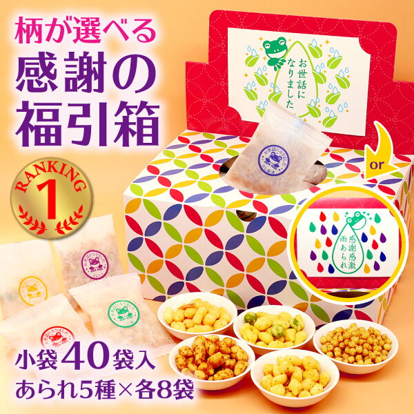 送料無料 感謝の福引箱 柄が選べる 40袋 大量 あられ おかき メッセージ お世話になりました 可愛い プチギフト 甘く…