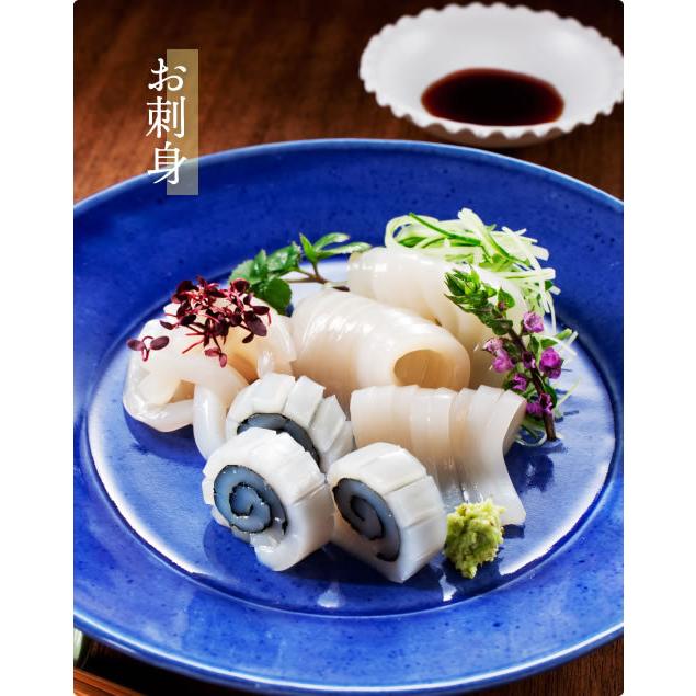 生スルメイカ姿が中型サイズ7ハイ入って約1.3kg分ありますので、お刺身はもちろんのこと煮物や揚げ物など色々な調理方法でお楽しみ頂けます。