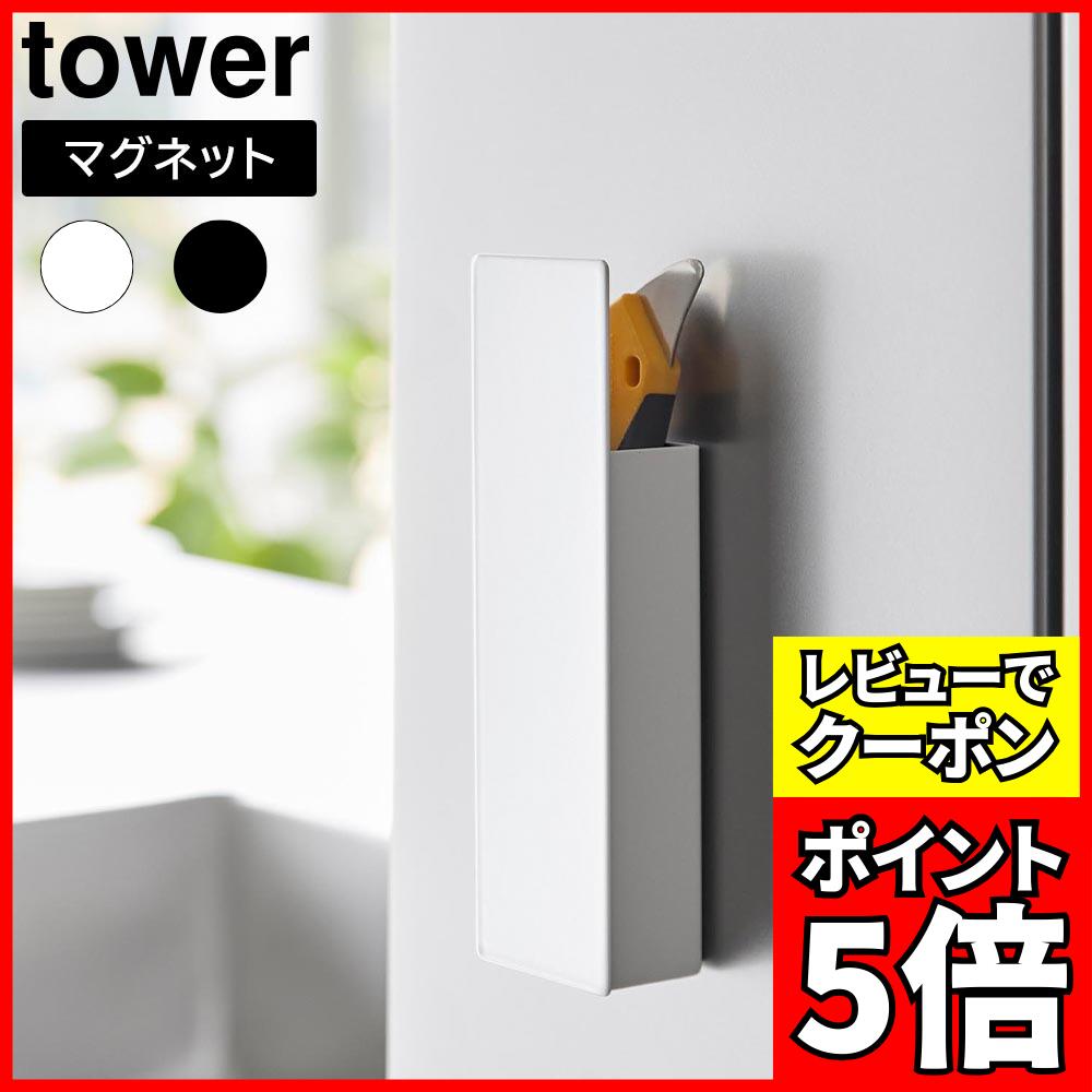 【レビュー特典】 tower 『 山崎実業 隠せるマグネットカッターホルダー タワー 』 ホルダー 収納 カッターナイフ ハサミ ペン入れ 小物 マグネット 磁石 冷蔵庫 ドア キッチン 玄関 シンプル 公式 ホワイト ブラック 1933 1934 YAMAZAKI