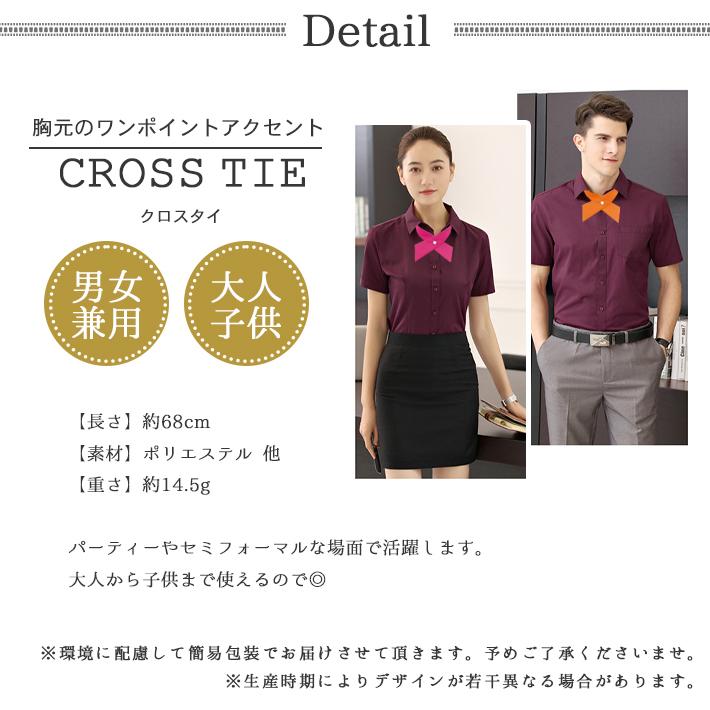 【商品備考】胸元でクロスさせてアクセントをつける男女兼用クロスタイです。タキシードなどのフォーマルな服装はもちろん、パーティー向けのセミフォーマル、カジュアルな服装にも合わせられます。また、大人、子供兼用ですので、お子様の入園式、卒園式、入学式、卒業式にも◎【素材】ポリエステル、他
