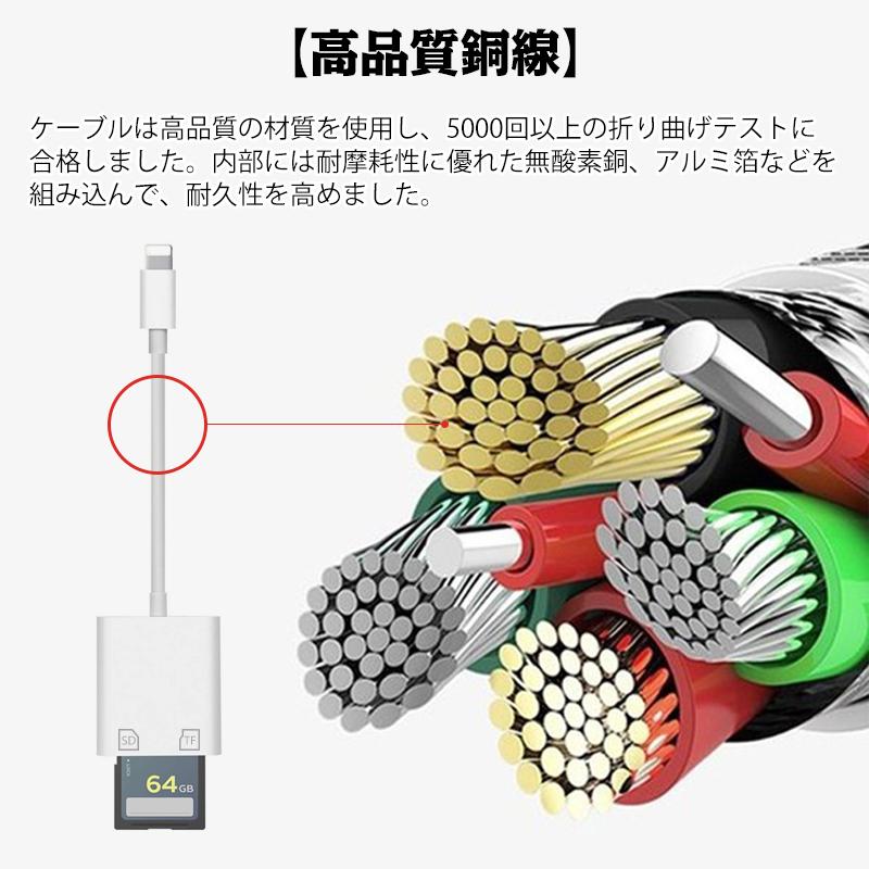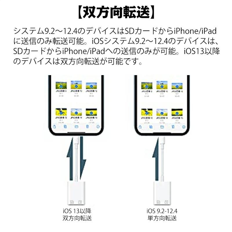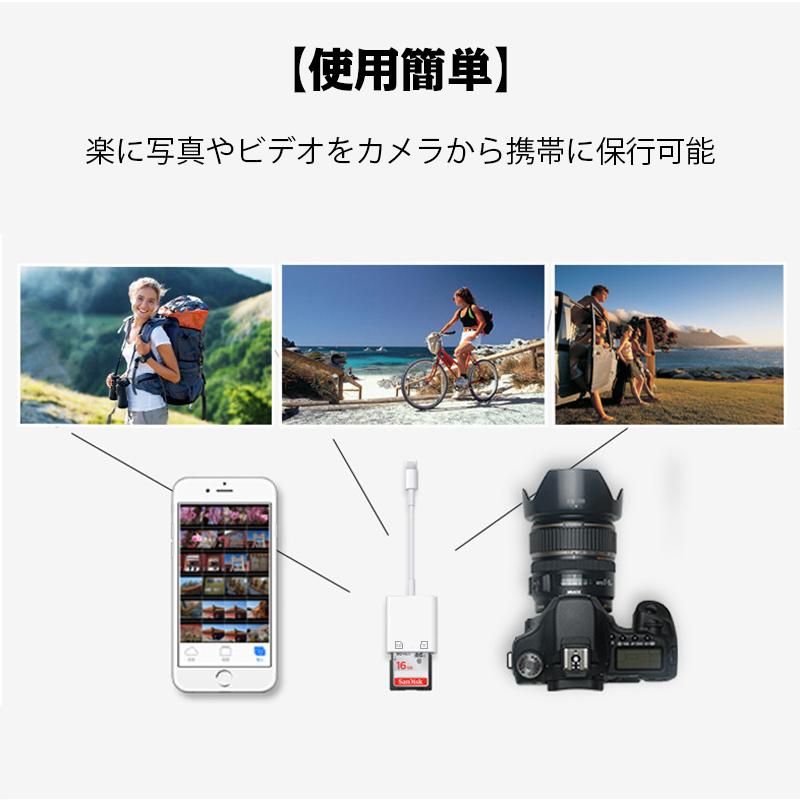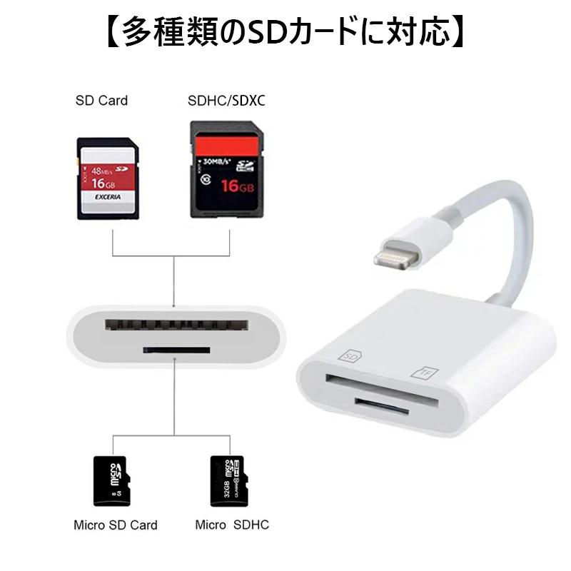 iPhoneやiPadに接続し、SDカード、microSDカード内のデータを直接転送することが出来ます。